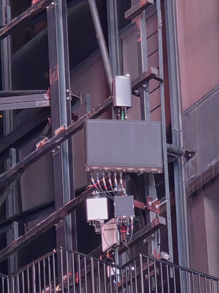 The RF environment was characterized by a layered architecture: macro sites providing LTE and FR1 coverage formed the coverage anchor, while a dense grid of mmWave small cells mounted on street-level infrastructure such as light poles delivered the FR2 capacity layer. This deployment model provided an ideal backdrop to evaluate performance differences between LOS and NLOS, as well as the relative strengths and limitations of each DUT in leveraging available spectrum.